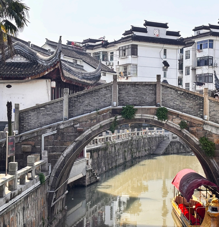 青浦金泽的迎祥桥是江南地区现存最完整的元代梁桥之一,始建于元代至元年间(1335-1340年)。它采用青石桥柱、楠木横梁与水磨方砖桥面的混合结构,桥体无栏无阶,纵向呈一道弧形坡面,其科学价值与建筑工艺,诉说着13世纪桥梁技术的辉煌。